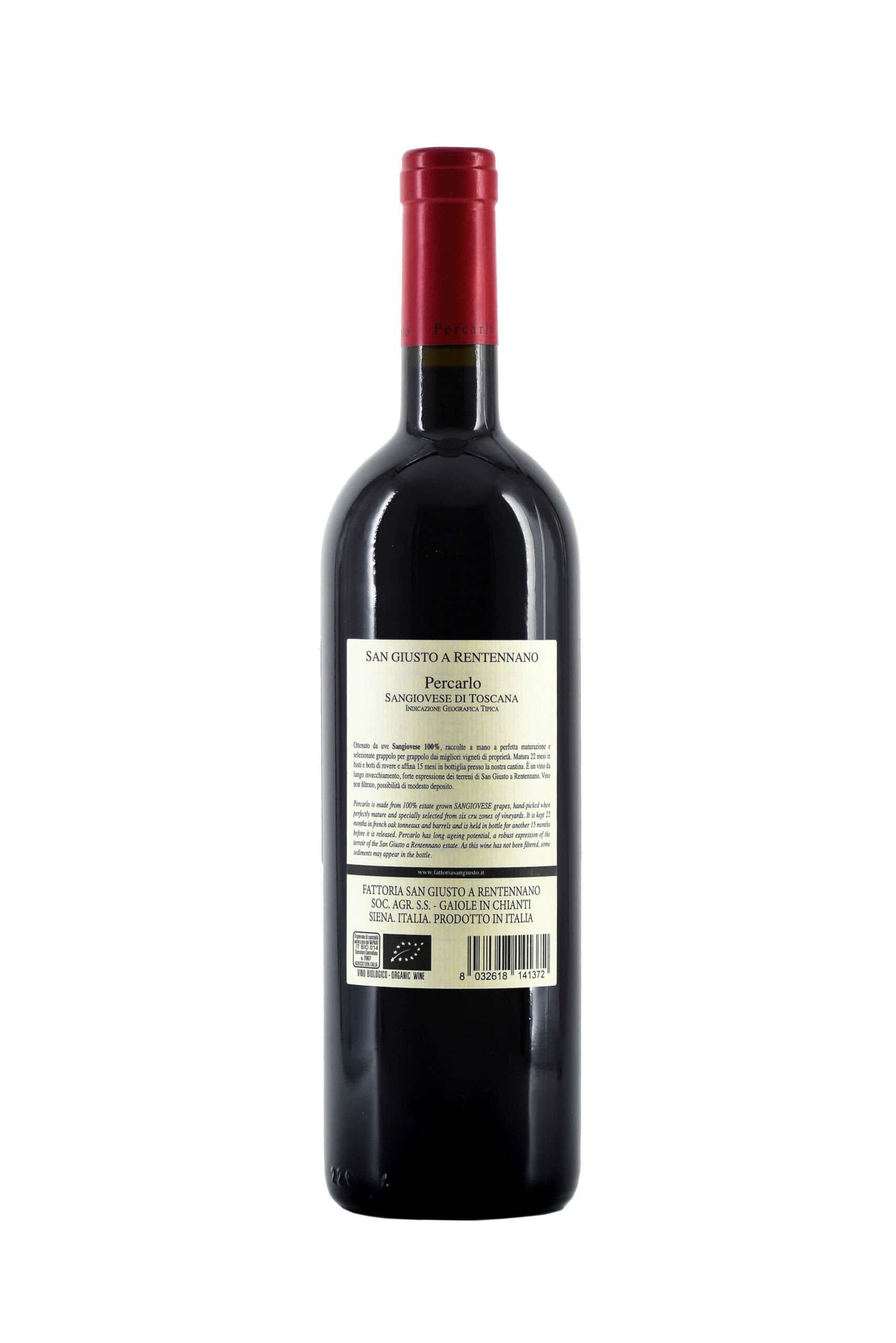 Prodotto da uve Sangiovese 100%, selezionate grappolo per grappolo dai migliori vigneti, con resa limitata a circa 0,8 Kg per pianta, raccolte spesso oltre i livelli usuali di maturazione. La fermentazione e macerazione avviene in vasche di cemento smaltate e si prolunga fino a 30-35 giorni. L’elevazione avviene in botti e tonneaux da 500 Lt di rovere francese per 20-22 mesi ed il vino, affina 18 mesi in bottiglia presso le nostre cantine. La maggior parte dei vigneti destinati alla produzione del Percarlo sono situati su terreni di origine pliocenica, formati da strati di sabbie e ciottoli (tufo) dai 2 ai 5 metri di profondità, al di sotto dei quali si trovano banchi di argilla. In minor parte si trovano su terreni di galestro e alberese, sul versante sud ovest dell’azienda; i vigneti di “Corsignano”, in prossimità di Monti in Chianti, sono collocati invece su terreni decisamente più argillosi. L’altitudine media è di 270 Mt. s.l.m. Nonostante la diversità tra le annate (espressione di ogni vino fedele al suo terroir), il Percarlo mostra una continuità di caratteristiche che gli conferisce una propria precisa identità. E’ un vino da lungo invecchiamento, forte espressione dei terreni di San Giusto a Rentennano